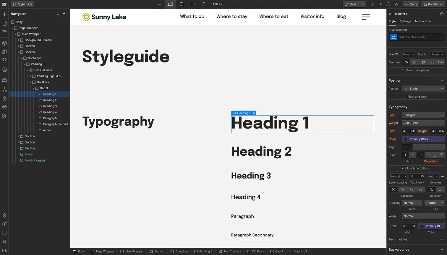 Easily customize the primary, secondary, and additional color palettes using Webflow's Variables feature, which simplifies managing your site's color schemes.
